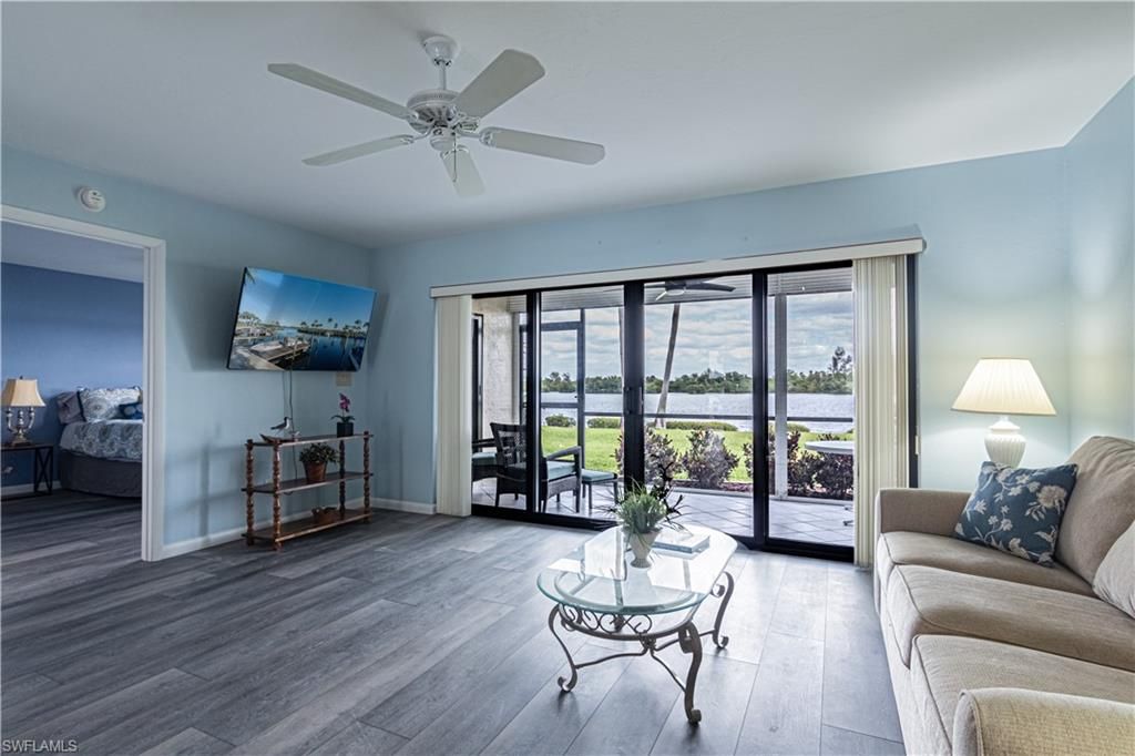 NO 2024 WATER INTRUSION! This RIVERFRONT/INTRACOASTAL WATERWAY CONDO is another hidden gem in the North Fort Myers Community of Bay Pointe Yacht and Racquet Club! Furnished and Turnkey! New Luxury Vinyl Plank flooring throughout. Make this Gulf Access BOATING community your new winter home or enjoy the beauty year round! Beautiful fountain feature in the lake out front and an unobstructed view of the active Caloosahatchee River/Intracoastal Waterway out back with DOLPHINS AND MANATEES, as well as every imaginable watercraft. Southeastern exposure for magnificent sunrises over the peaceful Caloosahatchee River. FIRST FLOOR, EASY ACCESS UNIT. A must see! New A/C 2024, New Roof 2022, New Paint 2023 and recently resurfaced pool and tennis courts. Pickleball, Tennis, Bocce Ball, Horseshoe Pit, Pool Table, Exercise room and Library area. Deeded Boat Docks are available for lease or purchase. Marina updates coming soon! HOA fee covers your Flood Insurance! Bay Pointe Yacht and Racquet Club is in close proximity to I-75, 2 airports and many conveniences. Call today for your personal showing!